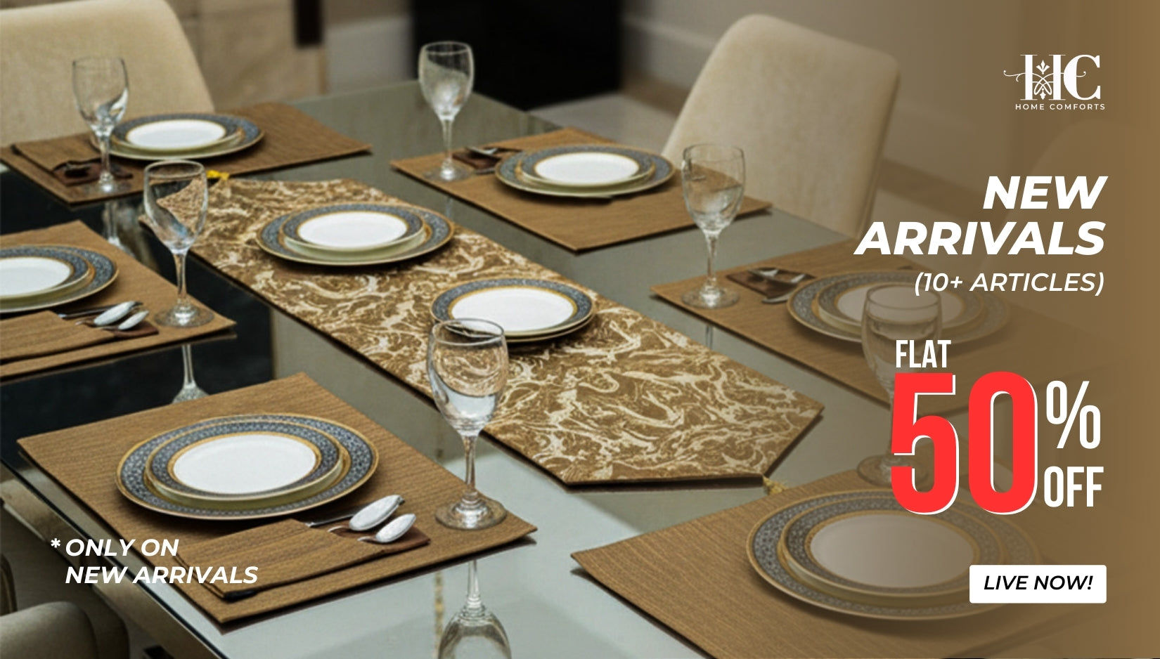 At Home Comforts, tradition meets innovation in the art of dining. With over a decade of expertise in home & textile table linen products, we're redefining the essence of dining experiences. Join us on this journey, where every meal becomes an experience, every table setting tells a story, and every dinner guest feels the warmth of your hospitality
