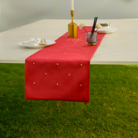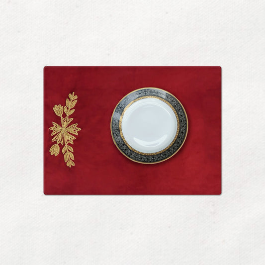 Maroon Lotus Embroidered Velvet Table Mats