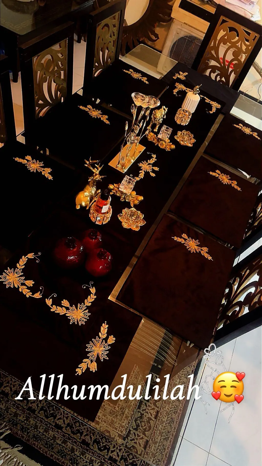 Jass Ali Black Lotus Embroidered Velvet Table Set