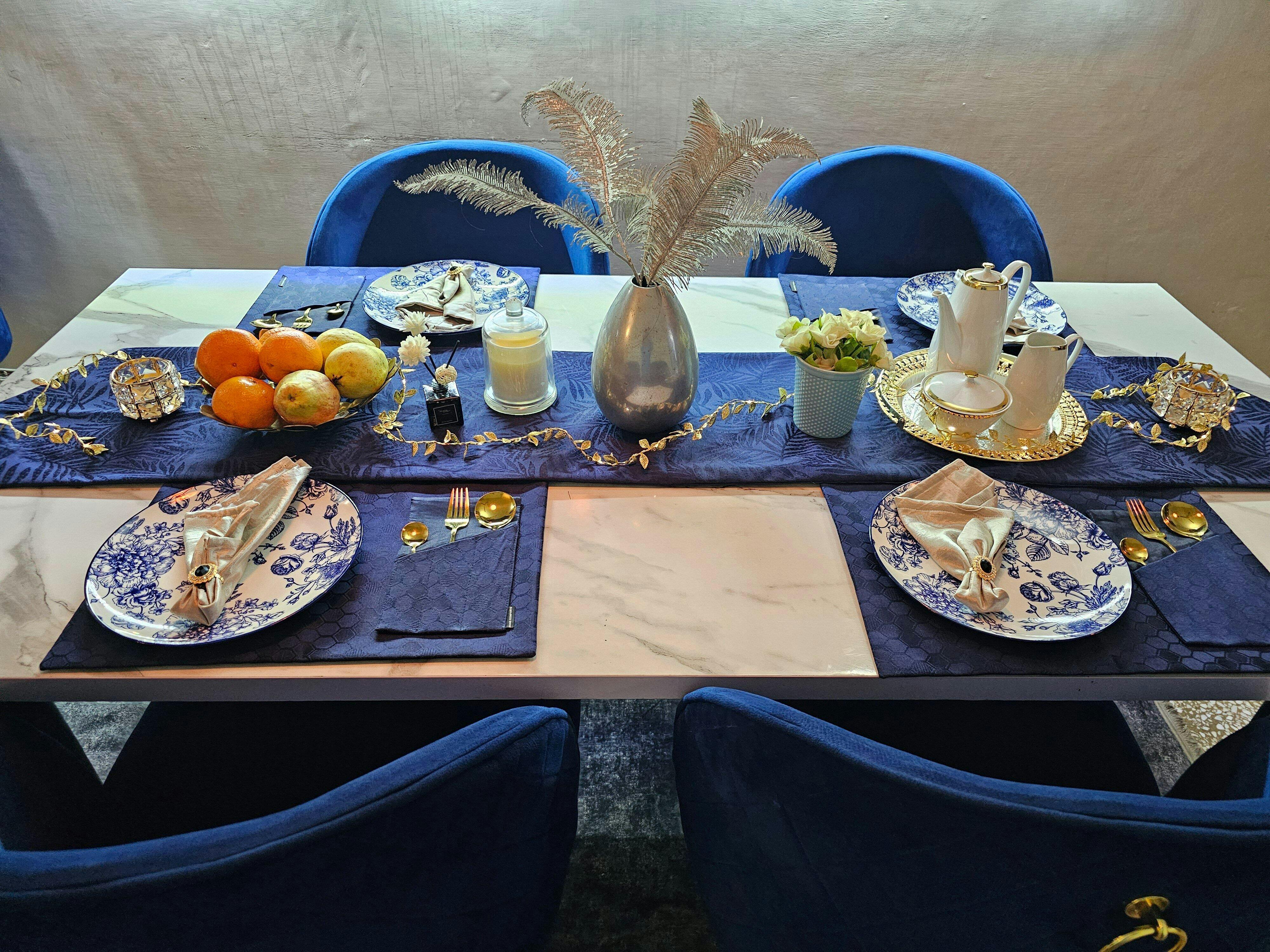 Set of 4: 1x Table Runner, 4x Table mats, 4x Cutlery Holder