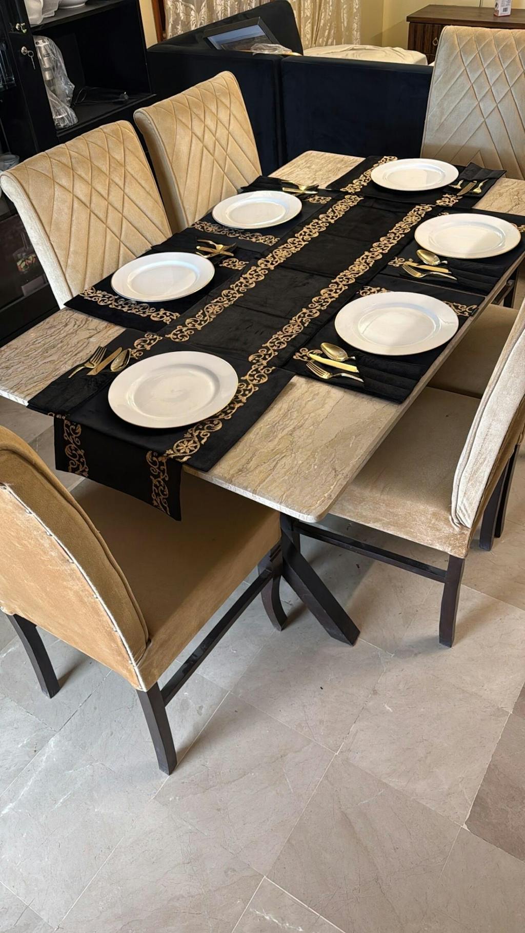 afshan Kashif Luxe Velvet Black Embroidered Table Set