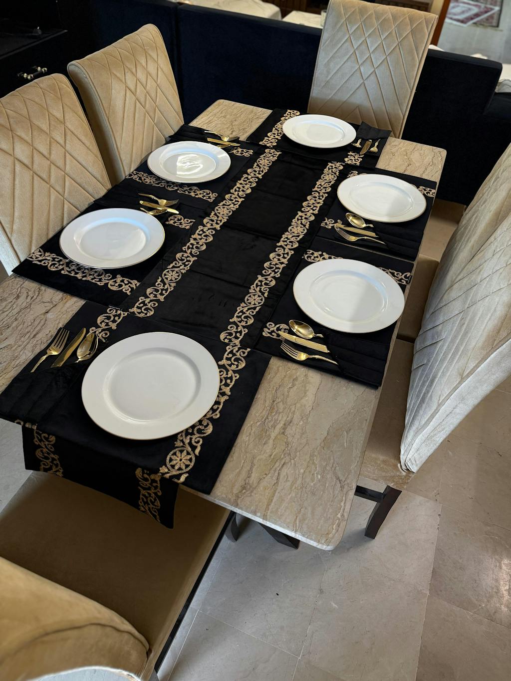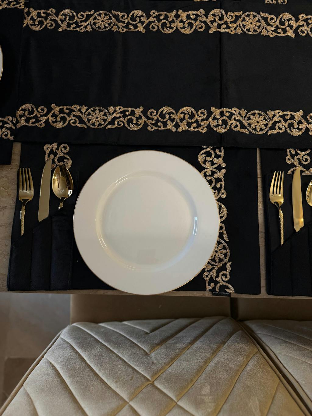 - SideĀ Motive Embroidered Velvet Table Mat